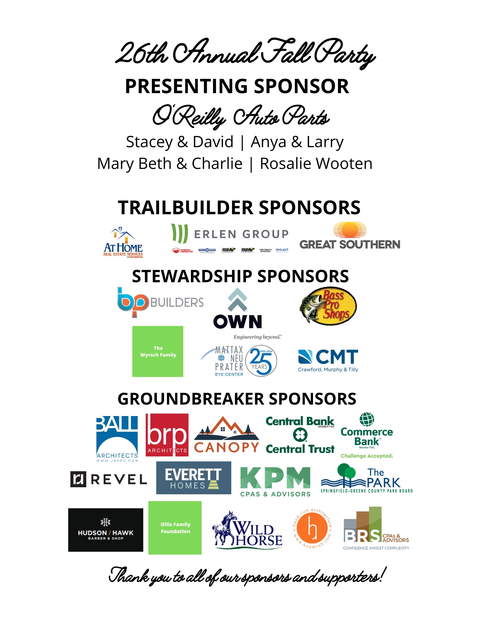 Thank you so much for supporting the 26th Annual Fall Party & Fundraiser Presented by O’Reilly Auto Parts. All of YOU – our sponsors, guests, and volunteers made this a successful event!