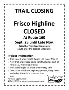 Frisco Highline Trail Closing Near Mile 3 September 23 – Late November